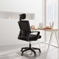 Kurua 사무용 메쉬의자 헤드레스트/팔조절, 화이트+블랙