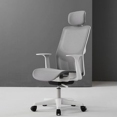 Kurua 라텍스 사무용 메쉬의자 의자 화이트+그레이, 라텍스+헤드레스트/팔조절