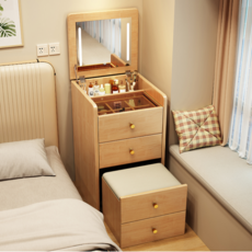 밀턴 콘솔 원목 화장대 서랍장 의자 거울 수납 조명 스툴 틈새 led 엔틱 입식, 우드